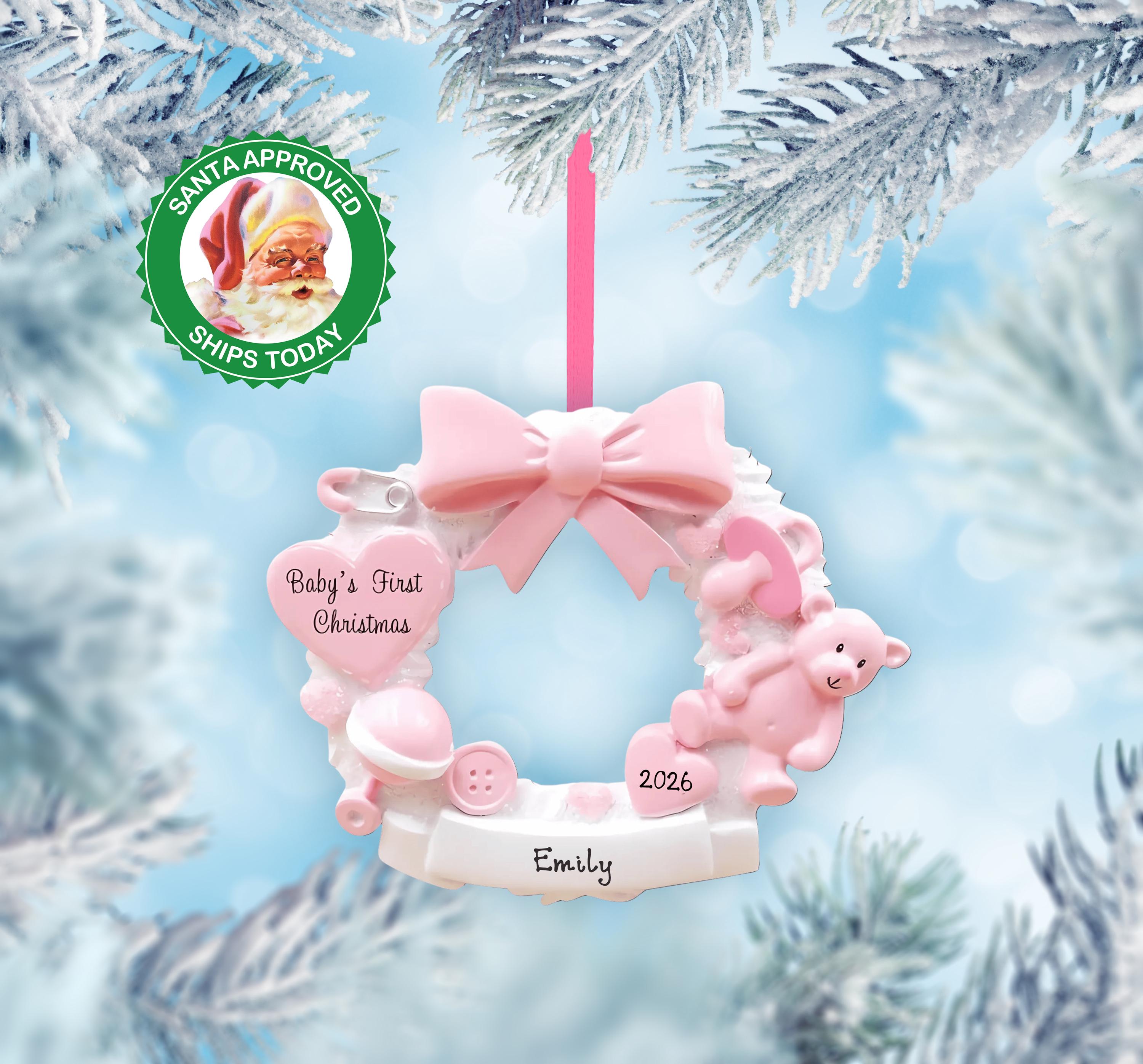 Baby’s First Christmas Ornament 2025 – Baby in Christmas Wreath Personalized Keepsake