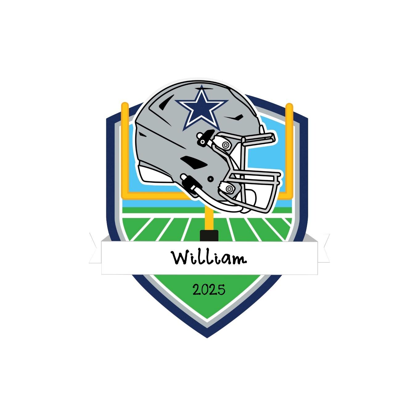 Show your Cowboys pride this holiday season with our NFL Dallas Cowboys Personalized Shield Ornament! Perfect for fans of America’s Team, this custom Christmas ornament features the official Cowboys shield design and can be personalized with a name, year, or special text.