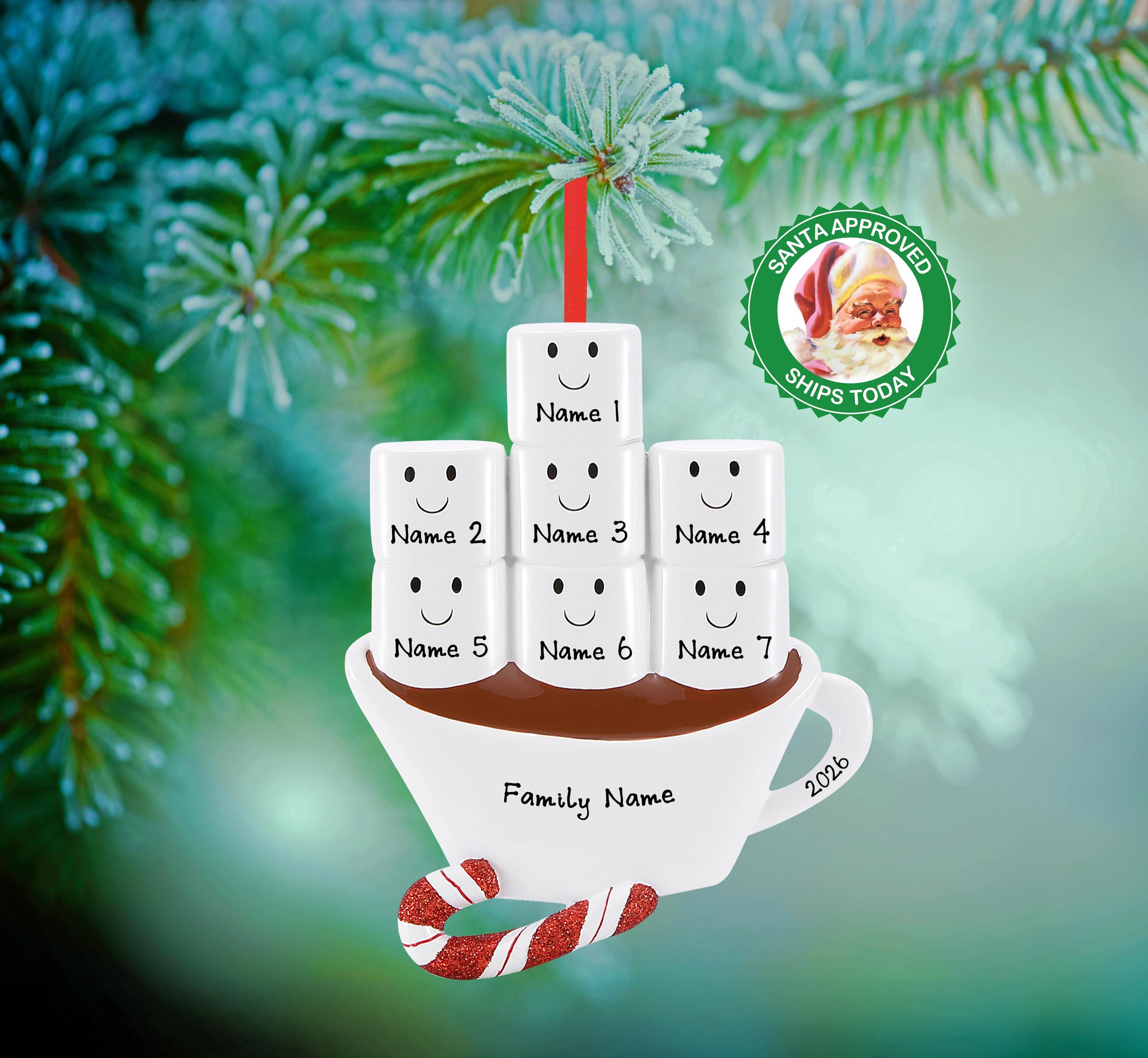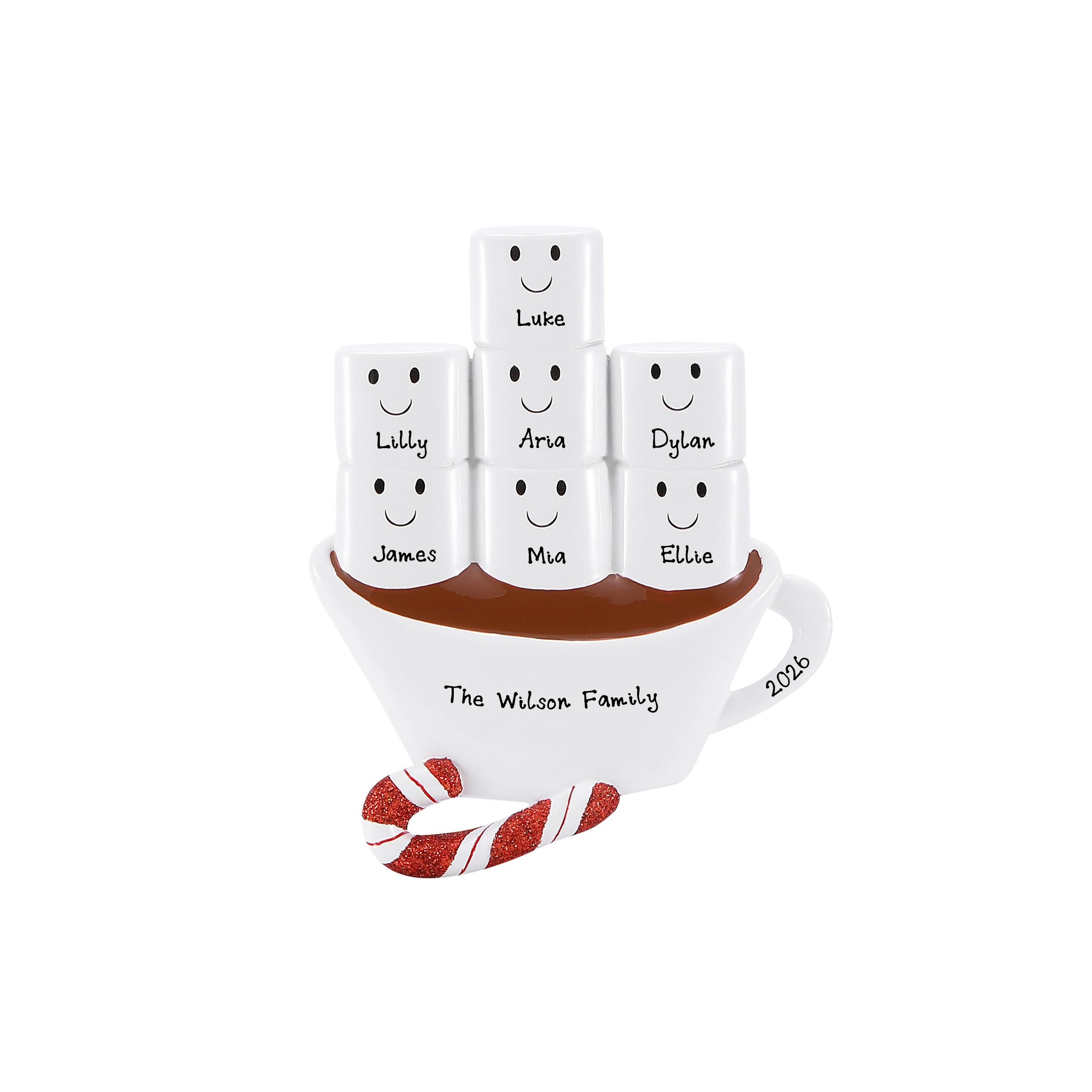 Family of 7 Personalized Hot Chocolate Mug Ornament – Marshmallow Hot Cocoa Christmas Keepsake – Custom Family Ornament 2025