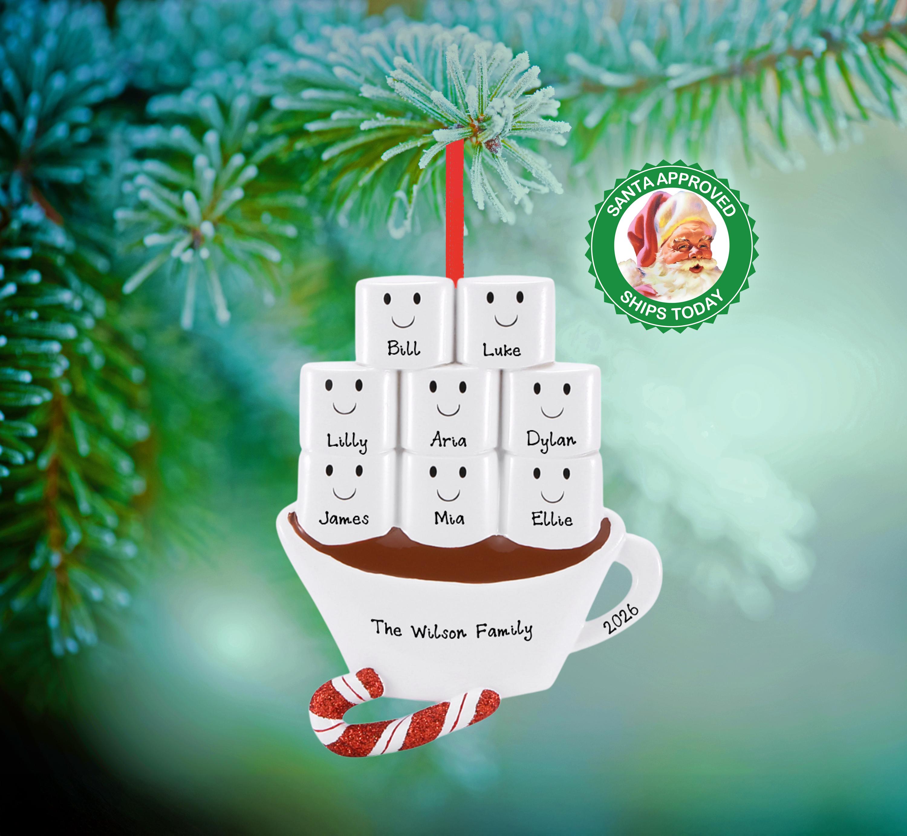 Family of 8 Personalized Hot Chocolate Mug Ornament – Christmas Ornament Gift