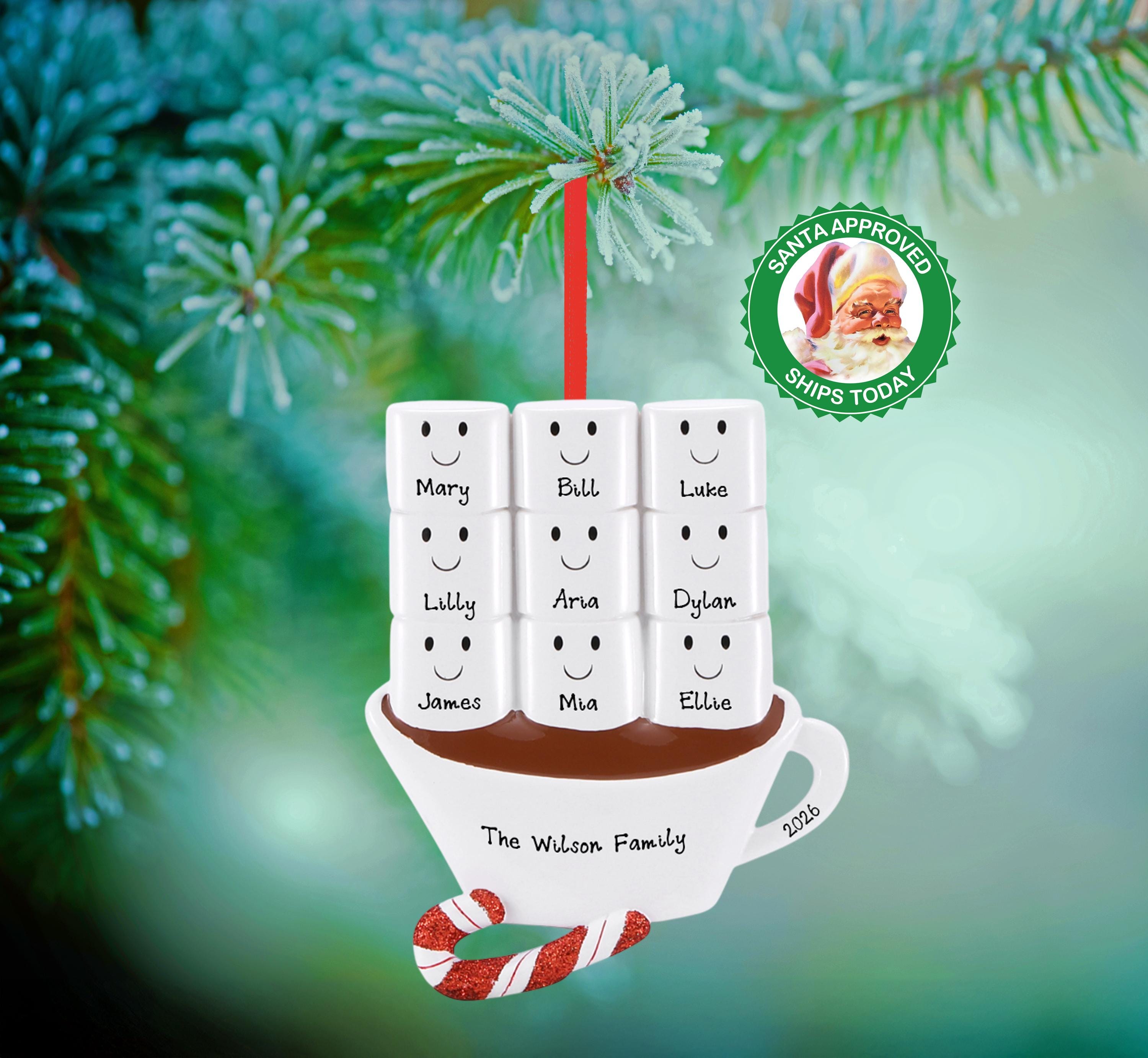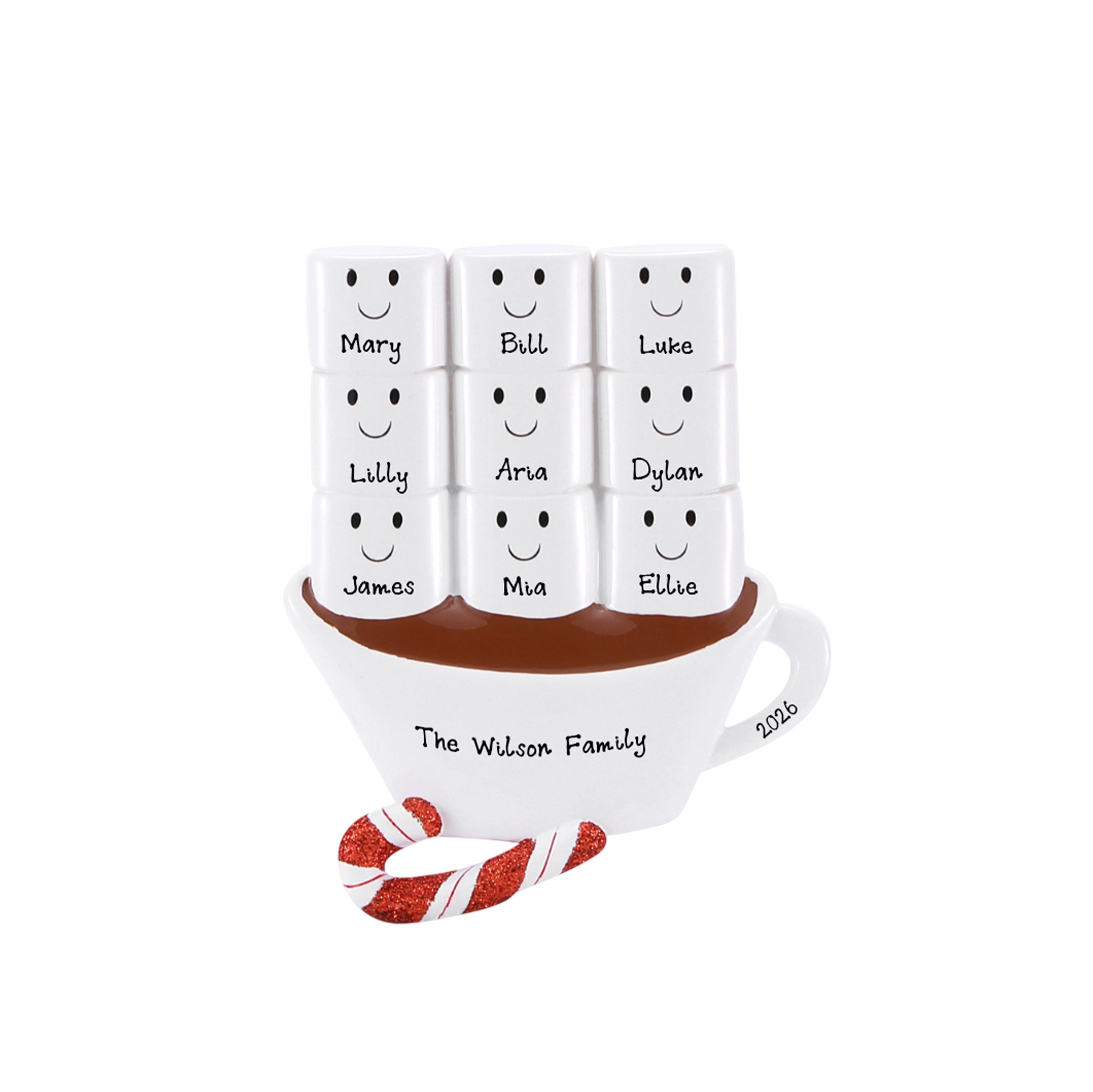 Family of 9 Personalized Hot Chocolate Mug Ornament – Christmas Ornament Gift