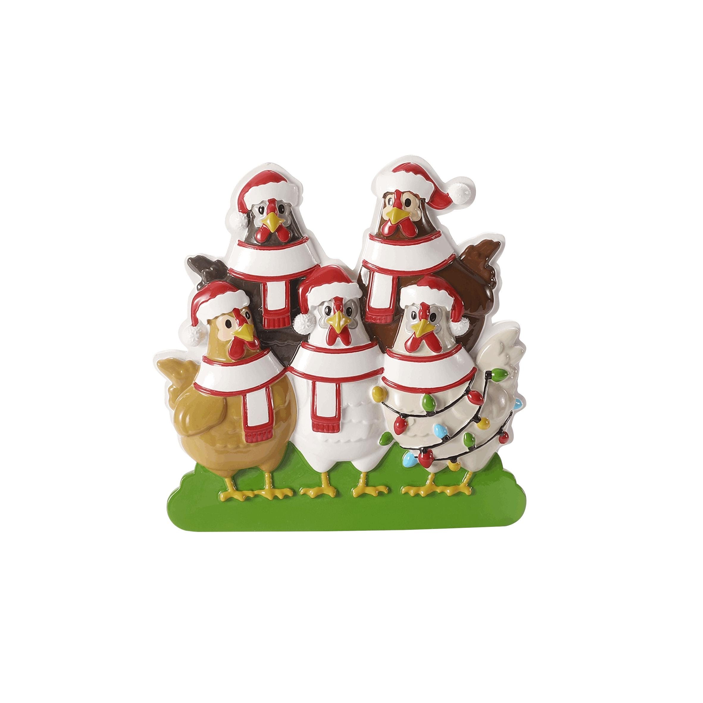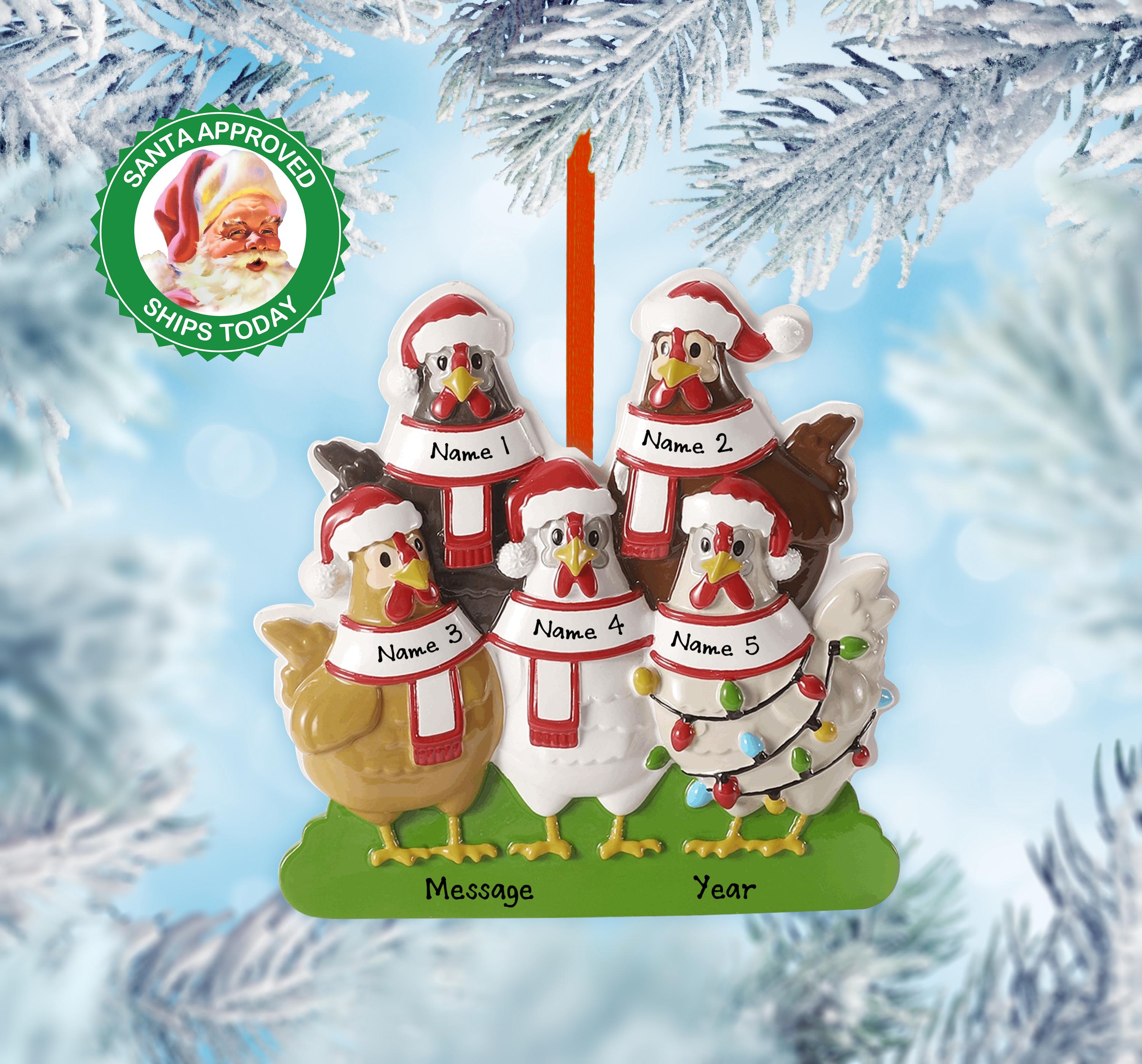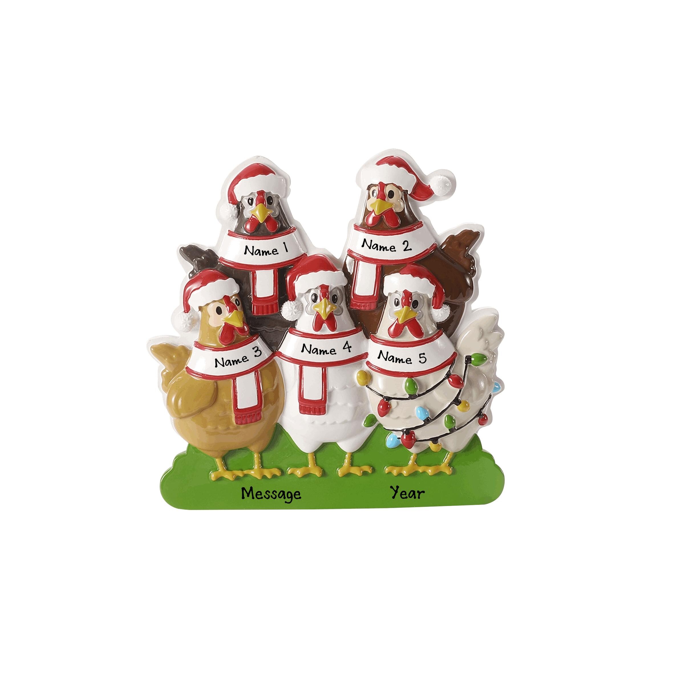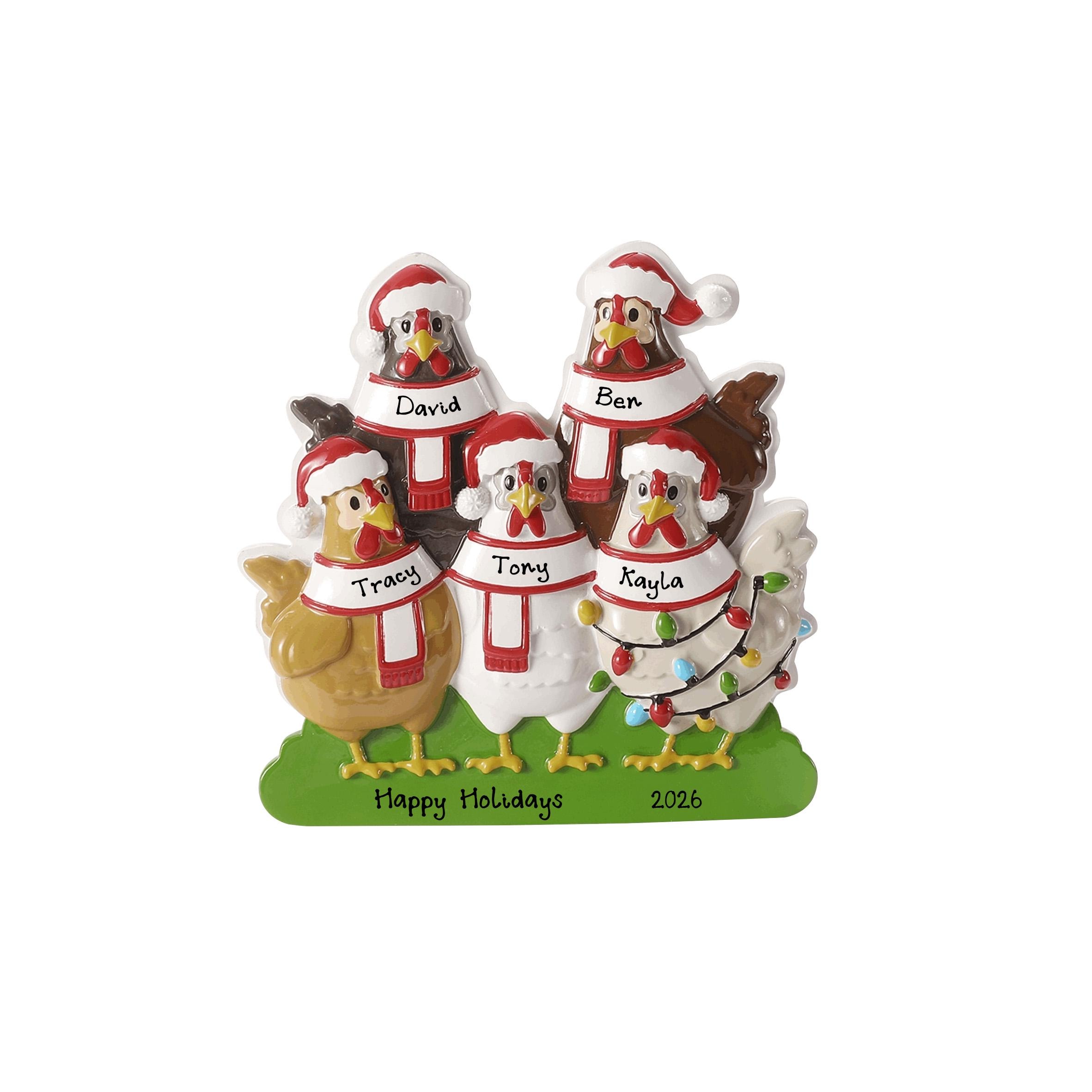 Personalized Chicken Family Christmas Ornament – Custom Family of 5 Ornament - Farmhouse Chicken Ornament