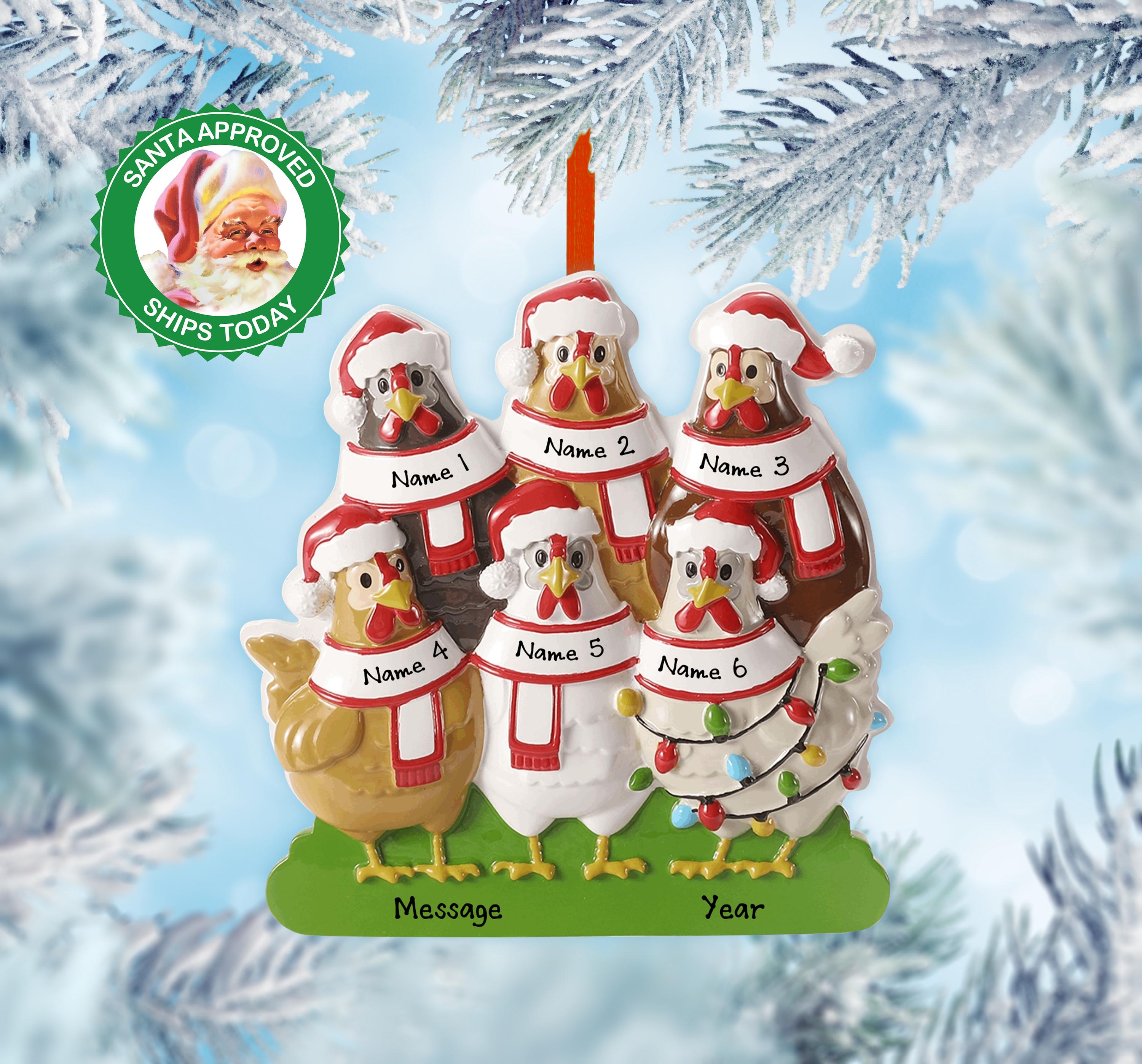 Personalized Chicken Family Christmas Ornament – Custom Family of 6 Ornament