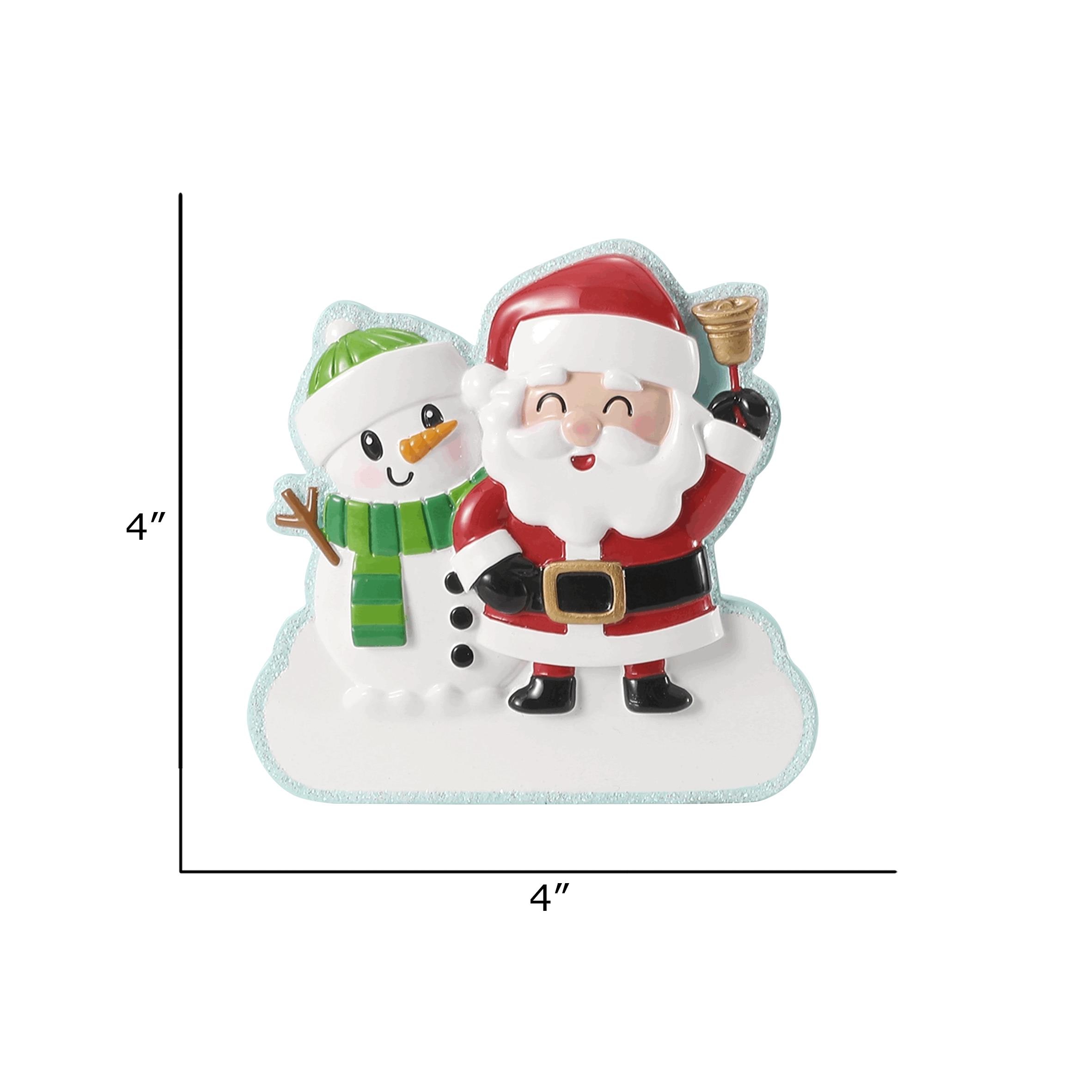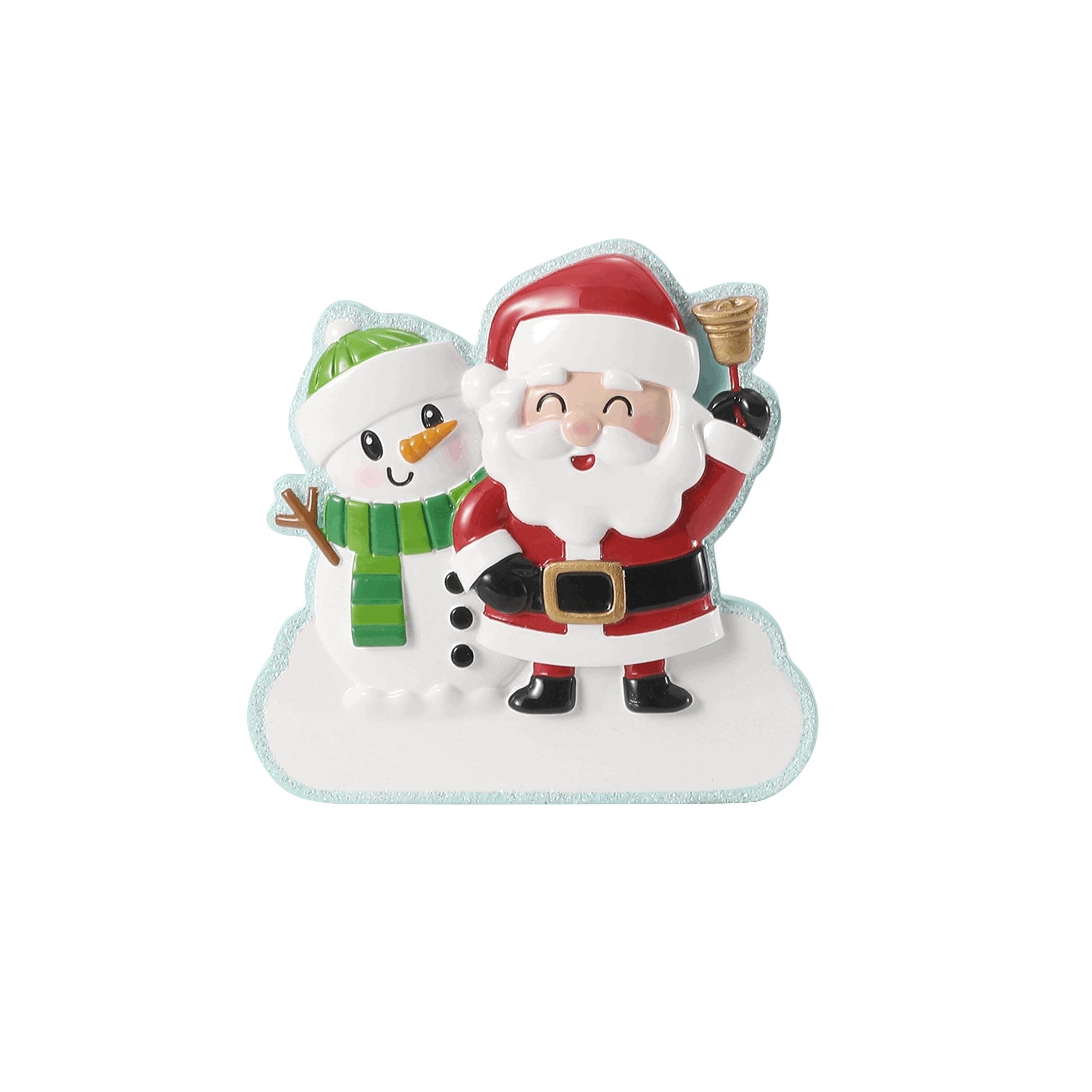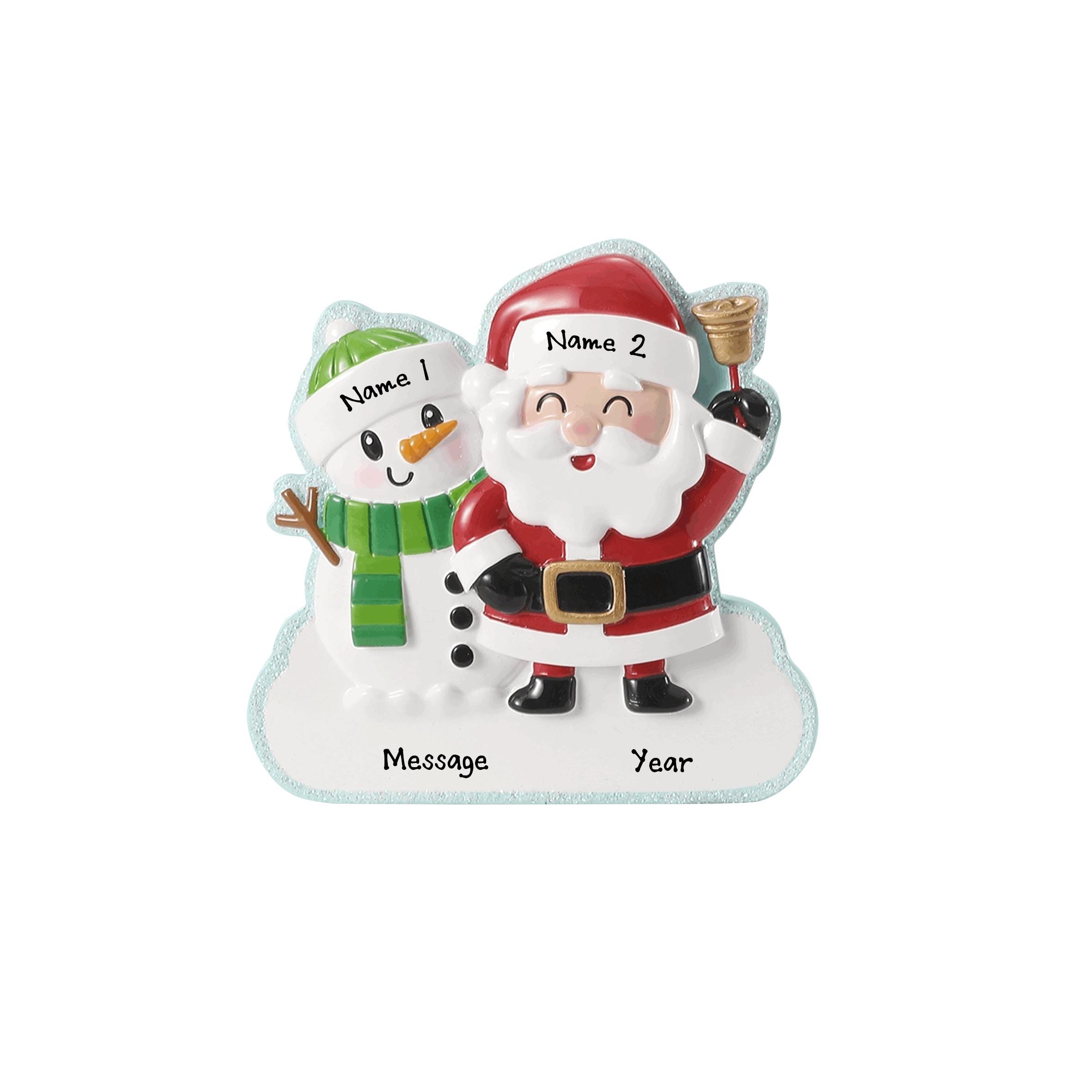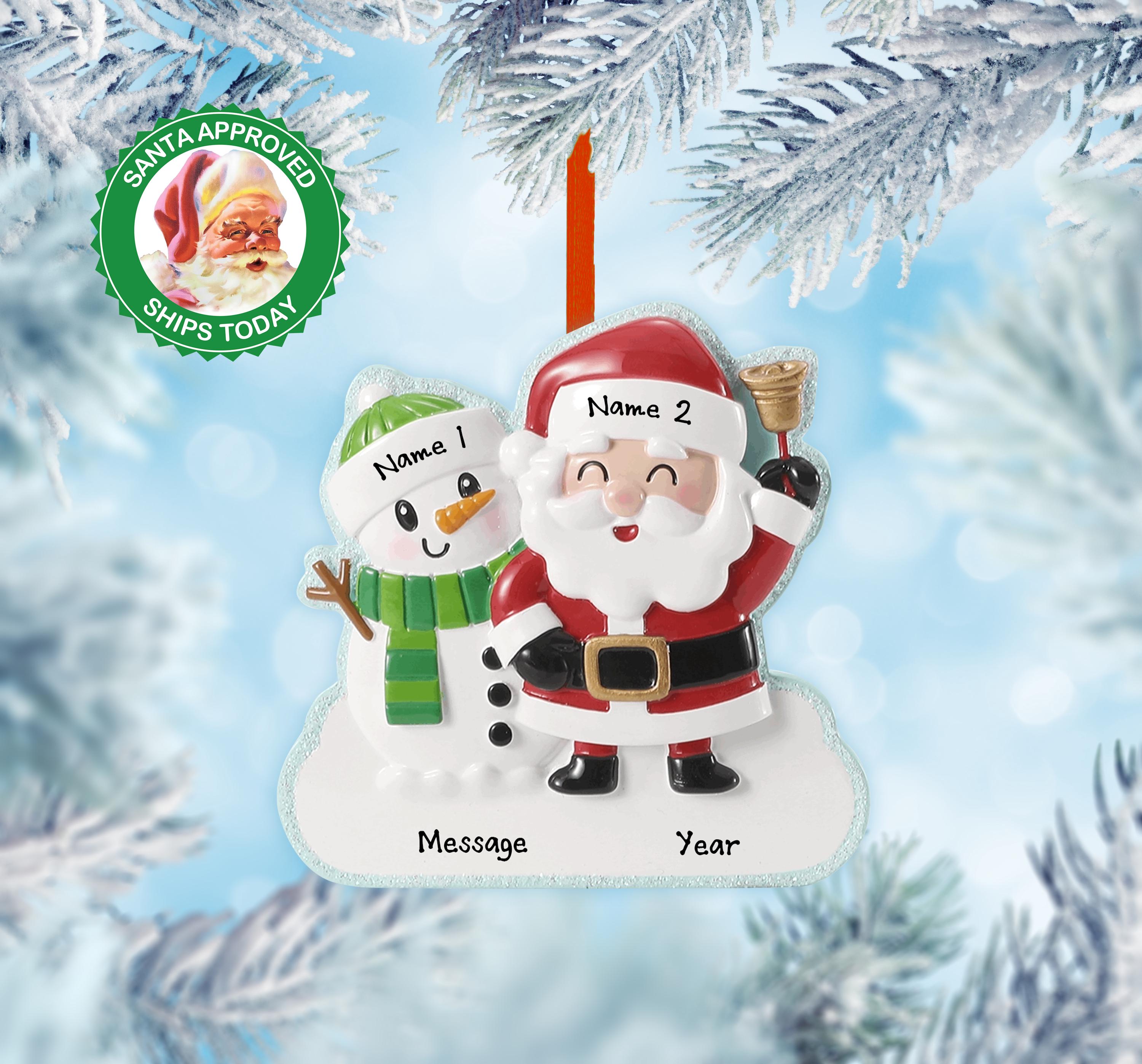 Add a touch of festive cheer with this Santa & Snowman Ornament — a personalized keepsake that will be treasured for years to come.