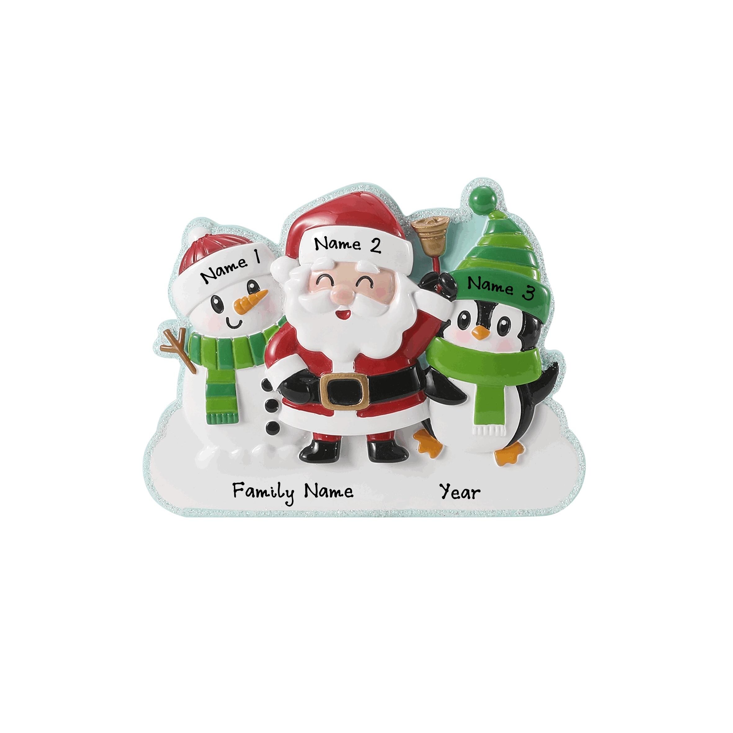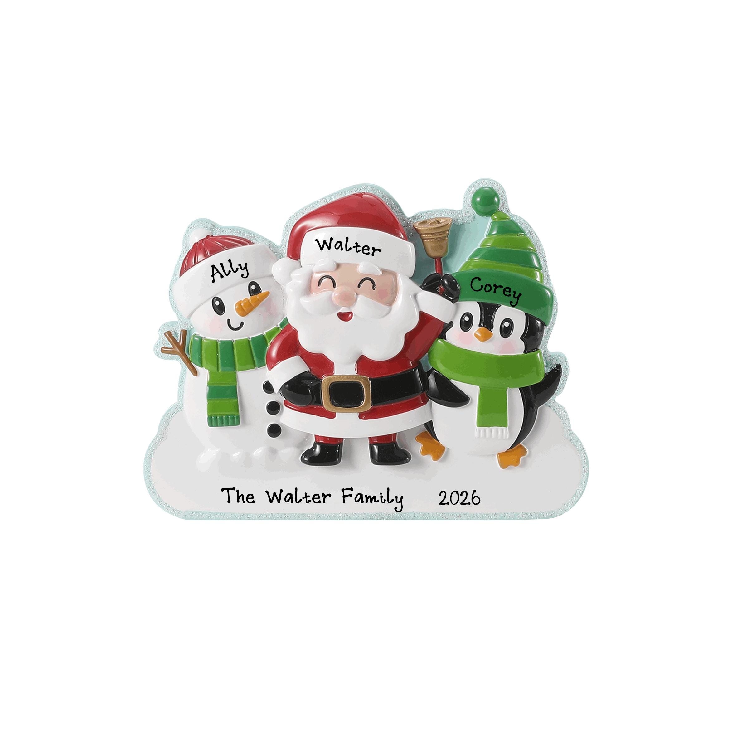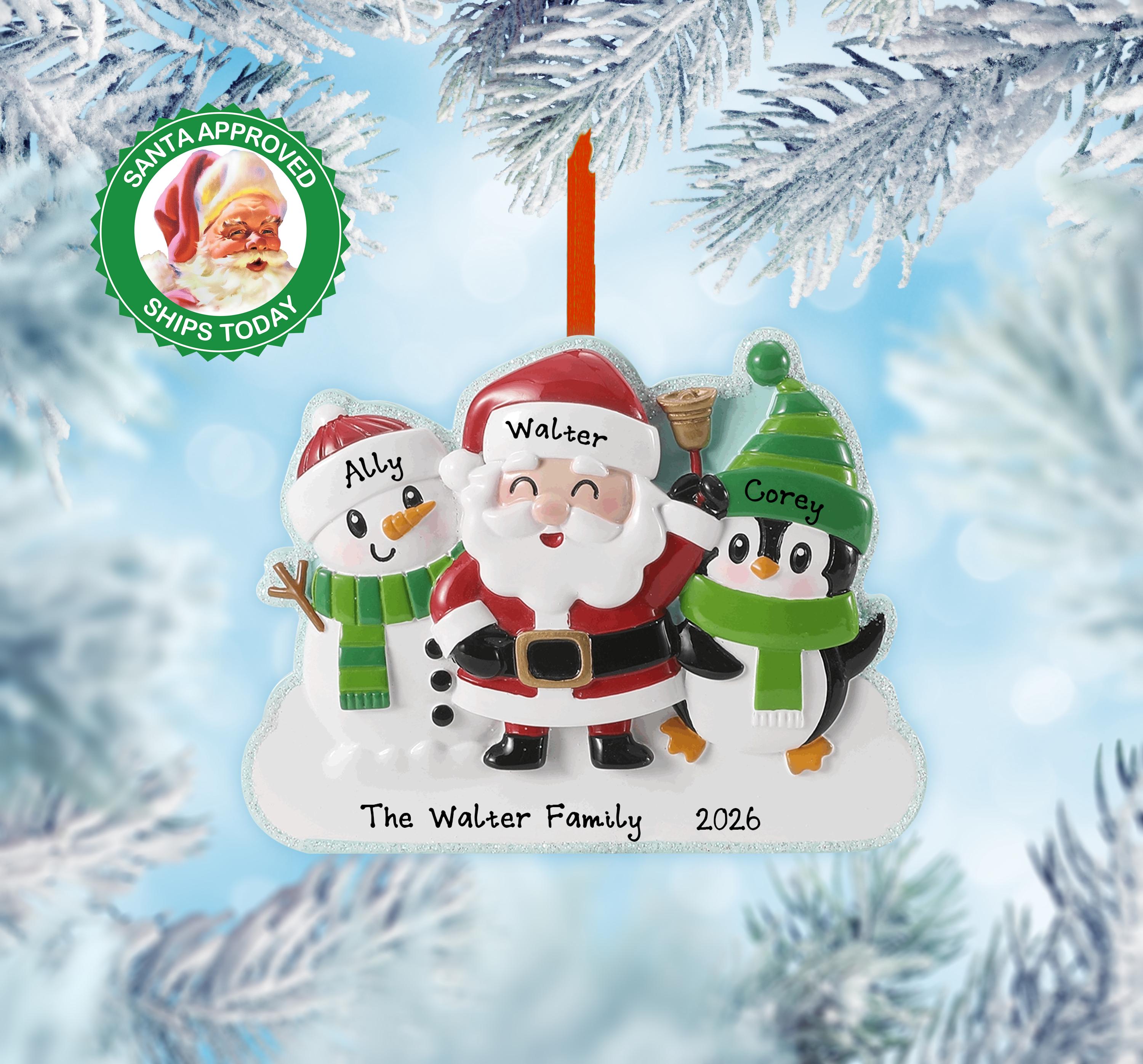 Personalized Family Christmas Ornament 2025 – Family of 3 Santa, Snowman & Penguin