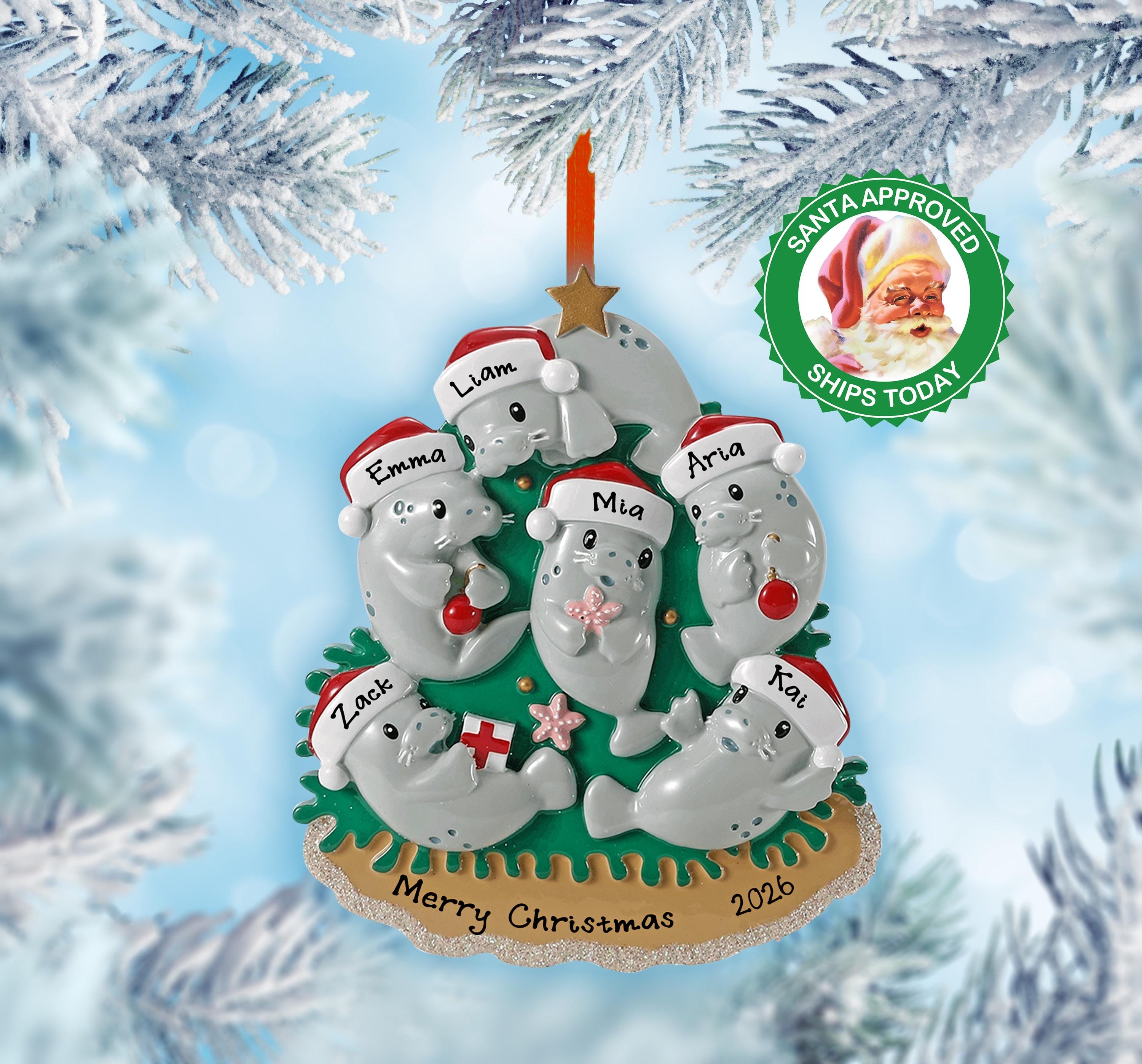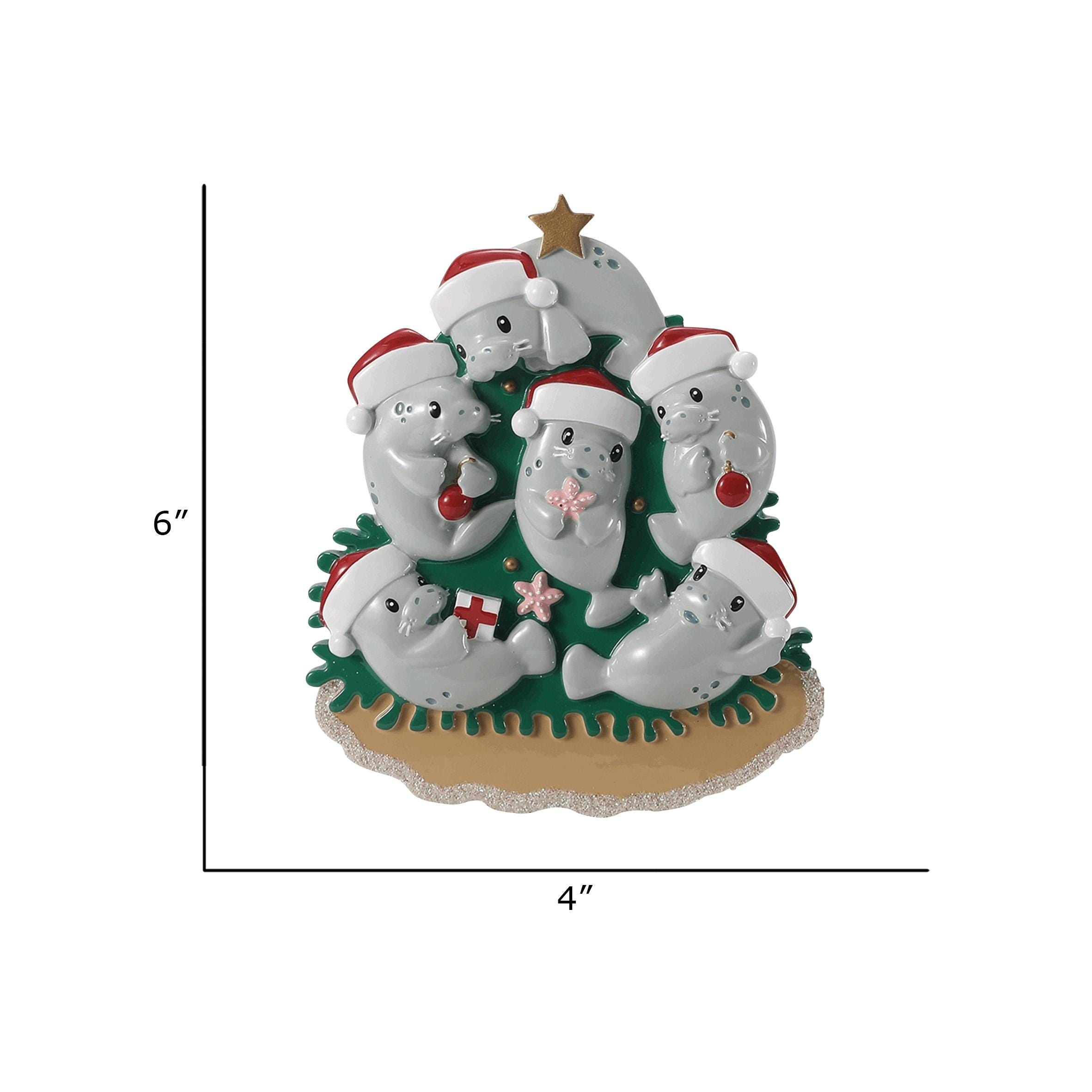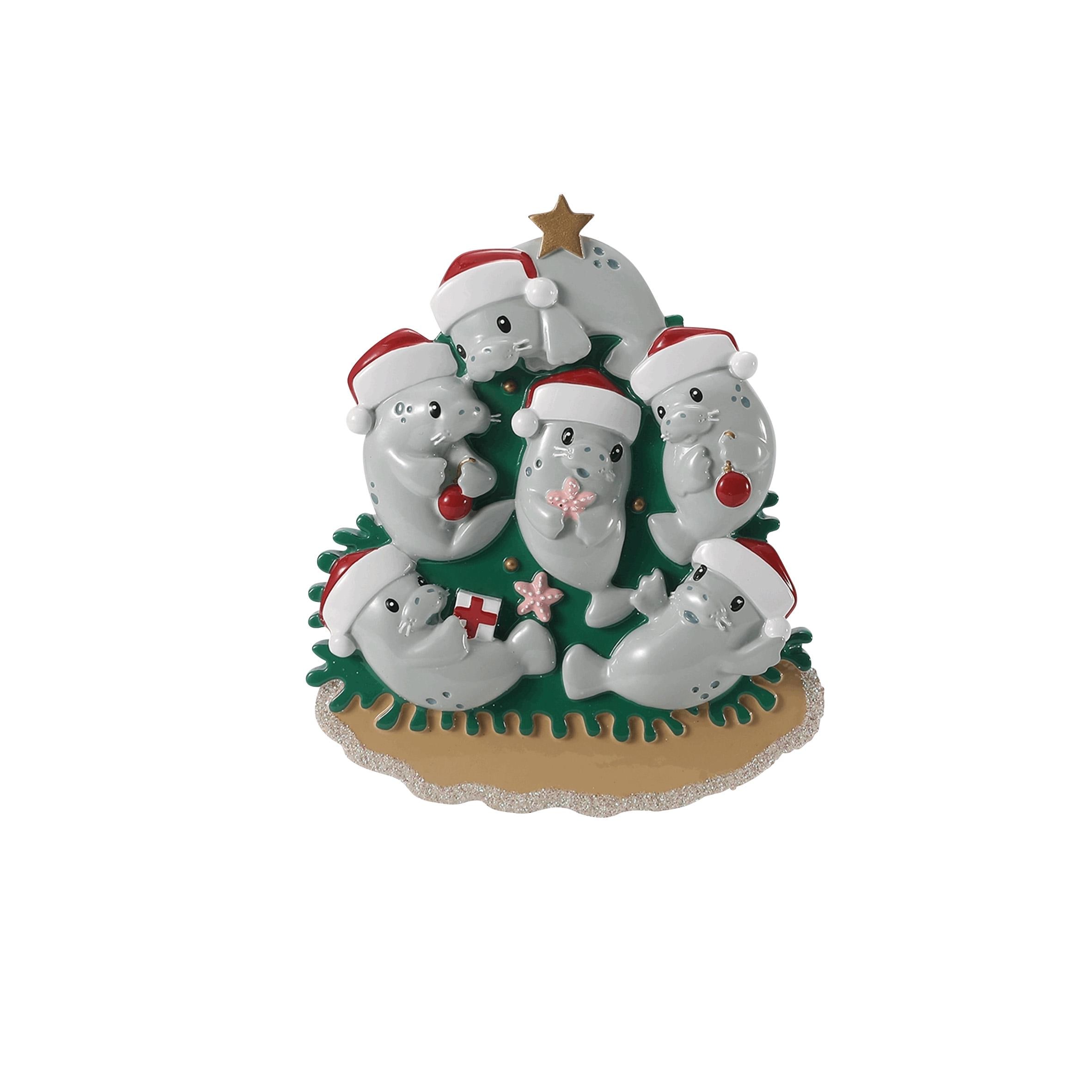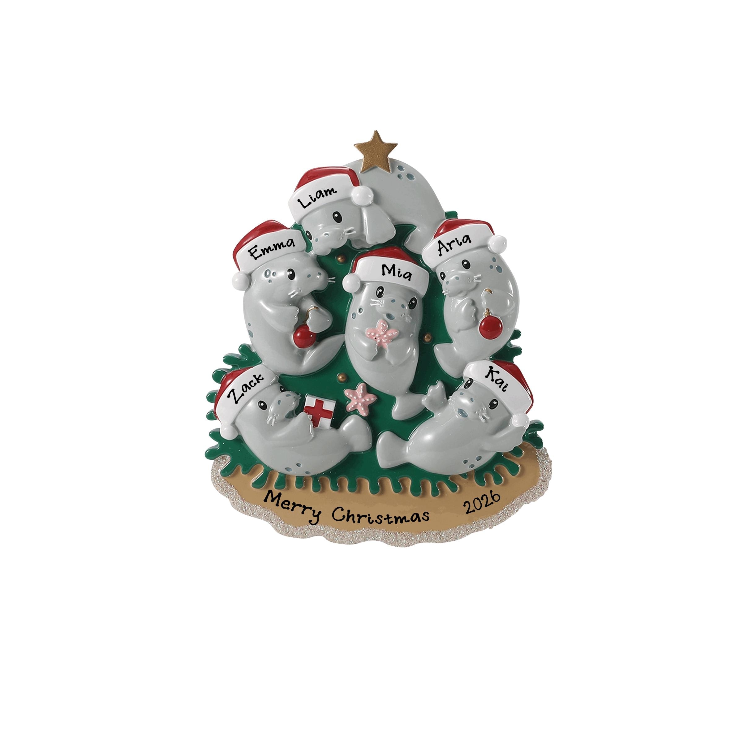 Personalized Manatee Family of 6 Ornament – Custom Christmas Ornament – Sea Cow Keepsake Gift