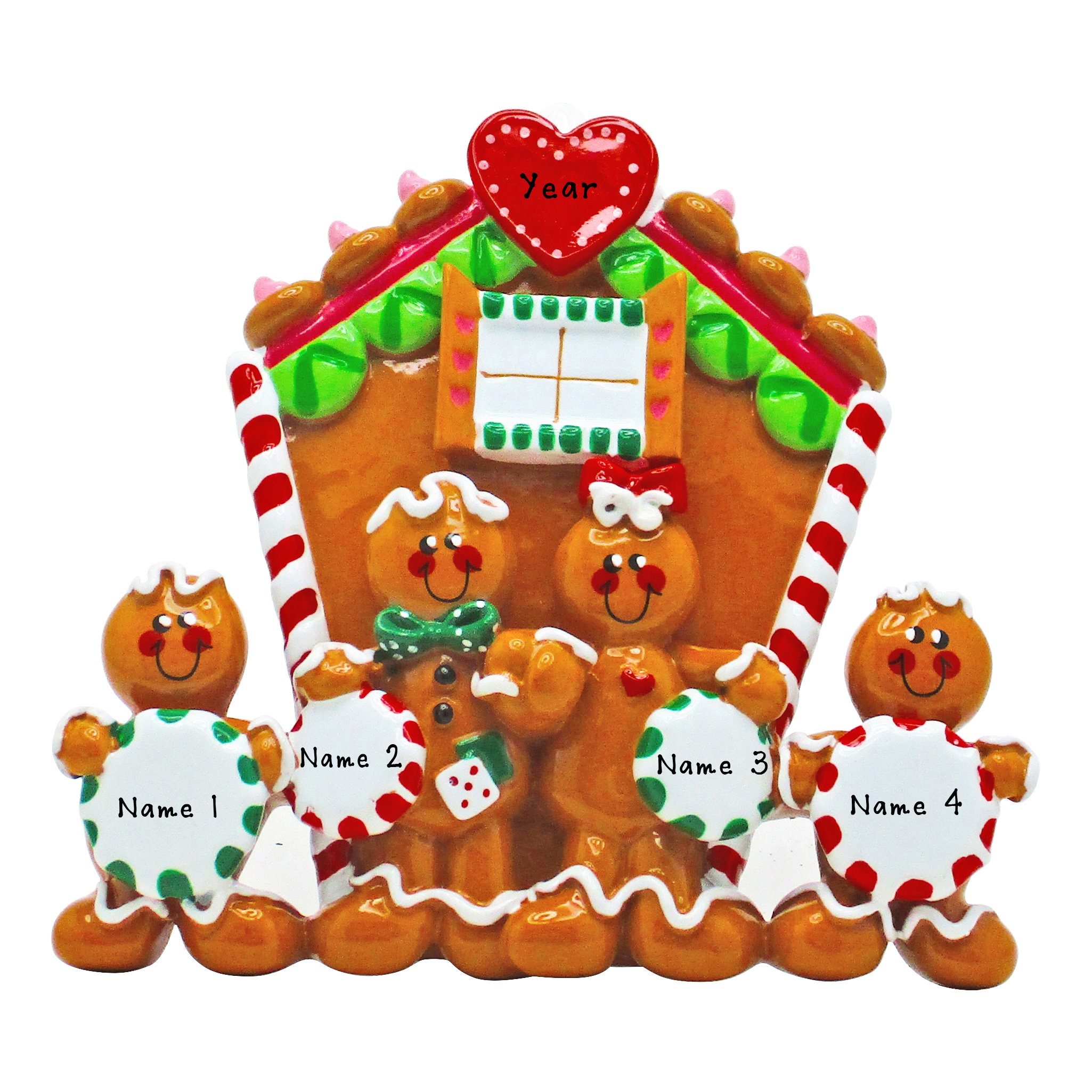 Personalized Gingerbread Family of 4 Christmas Ornament Custom Gift For Grandparents